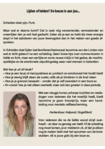 Scheiden doet pijn. Maar wat er daarna komt, kan nog veel zwaarder zijn. Zeker als je ex niet loslaat, manipuleert of jou het leven zuur maakt. Ondertussen staat iedereen klaar met een goed advies, maar daarmee is het probleem van de boze ex niet opgelost.